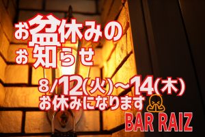 8/12(火)~14(木)を お盆休みとさせていただきます。 宜しくお願い致します。